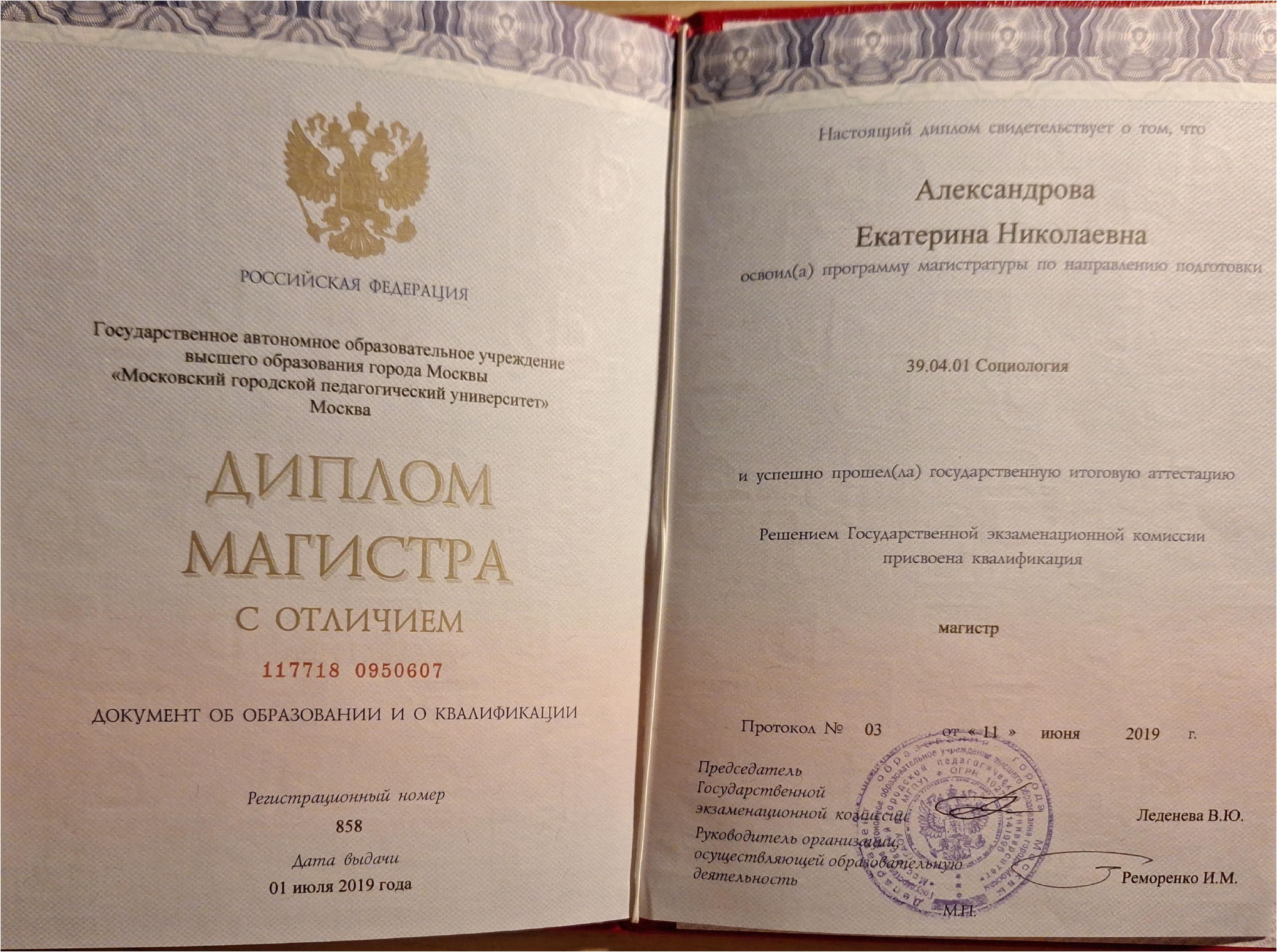 Окончила ПедВуз с красным дипломом